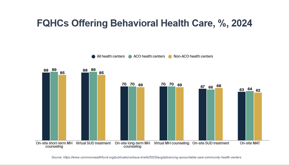 What was interesting is that participation in an ACO increased the FQHC adoption of key elements of whole person care models. For example, significantly more health centers in ACOs are notified when their patients visit the emergency department (68%) or are admitted to the hospital (70%) than health centers not participating in ACOs (53% and 55%, respectively . . .